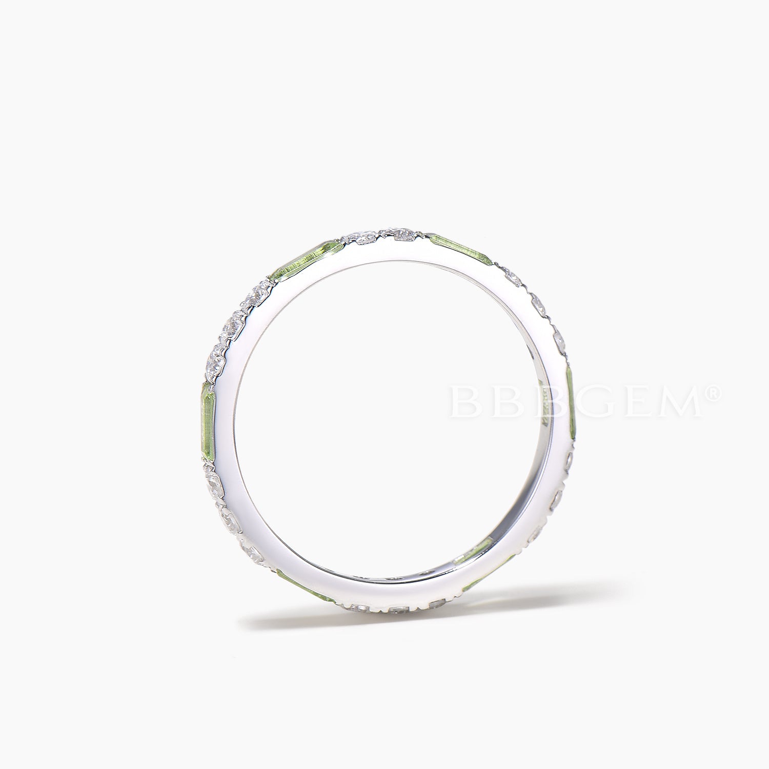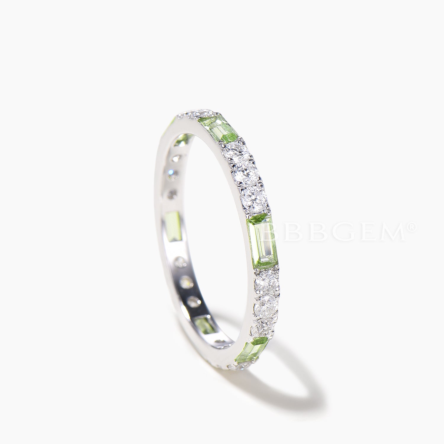 Baguette Cut Natural Peridot Wedding Band Diamond Full Eternity Stacking Band