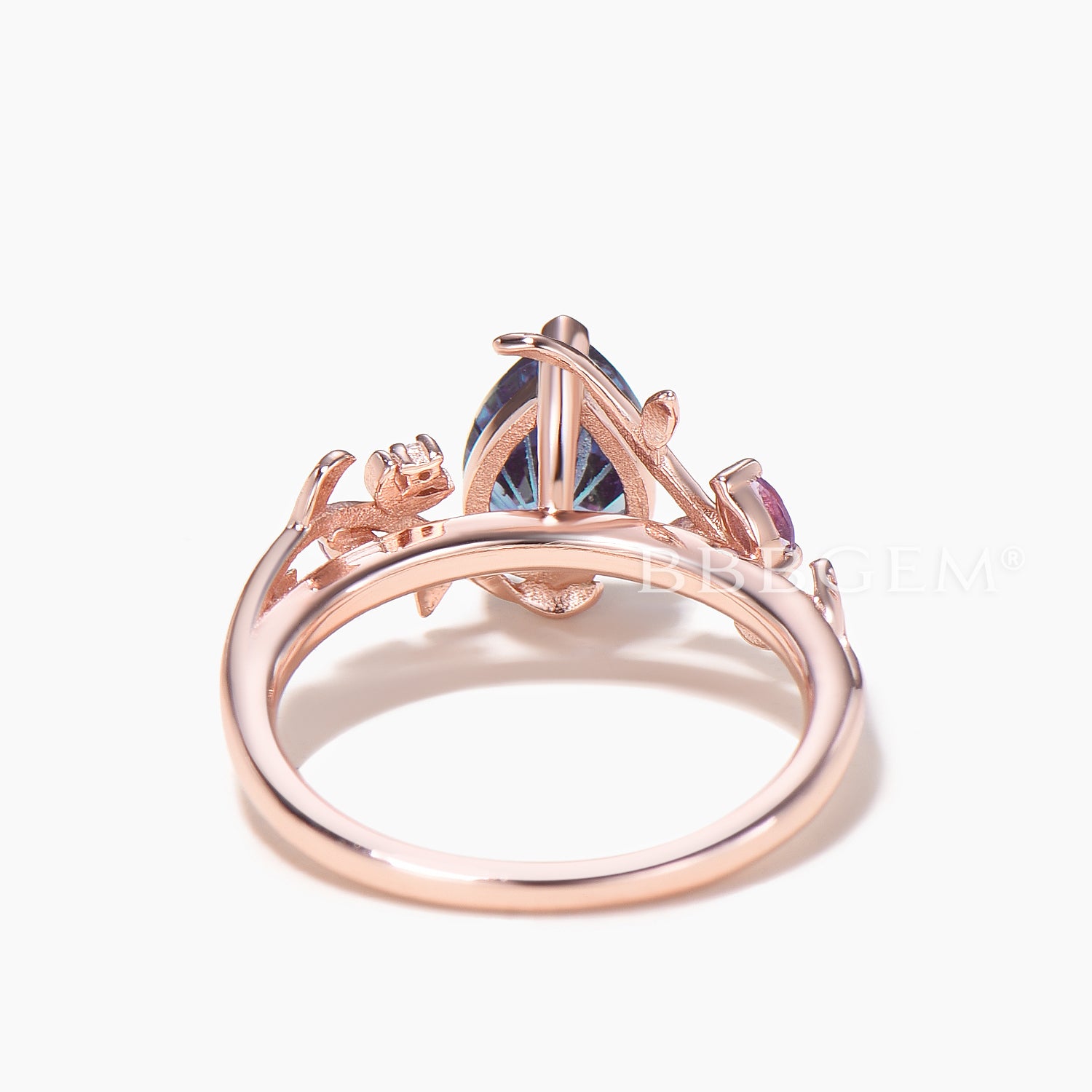 Pear Shaped Firework Cut Color-change Alexandrite Nature Inspired Ring