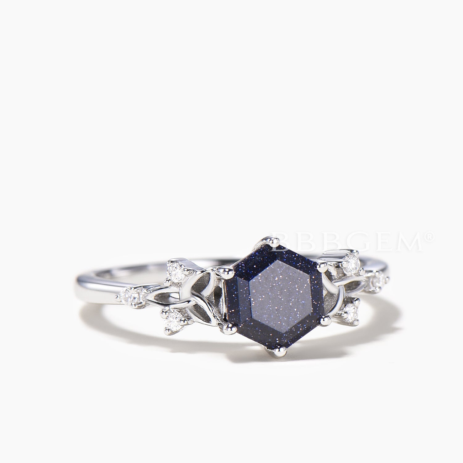 Hexagon Cut Blue Sandstone Engagement Ring Diamond Celtic Knot Ring