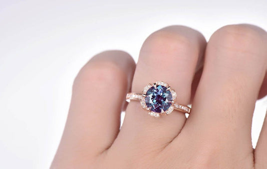 Vintage Alexandrite Engagement Ring Art Deco Flower Halo