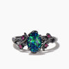 Oval Cut Black Opal Nature Inspired Engagement Ring Ruby Leaf Black Gold Ring