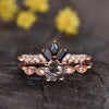 Classic Black Rutilated Quartz Black Diamond Engagement Ring Set Black Spinel Wedding Band