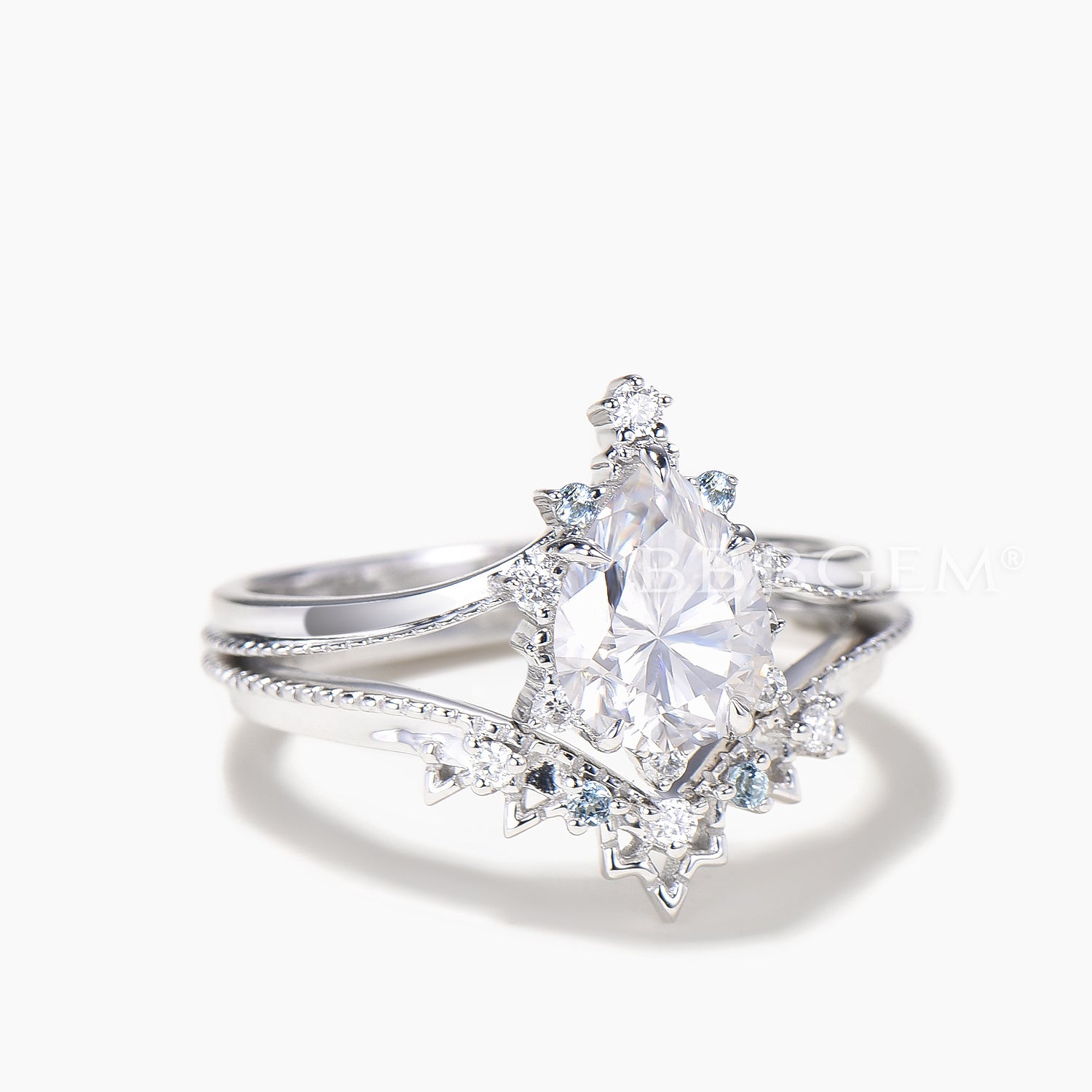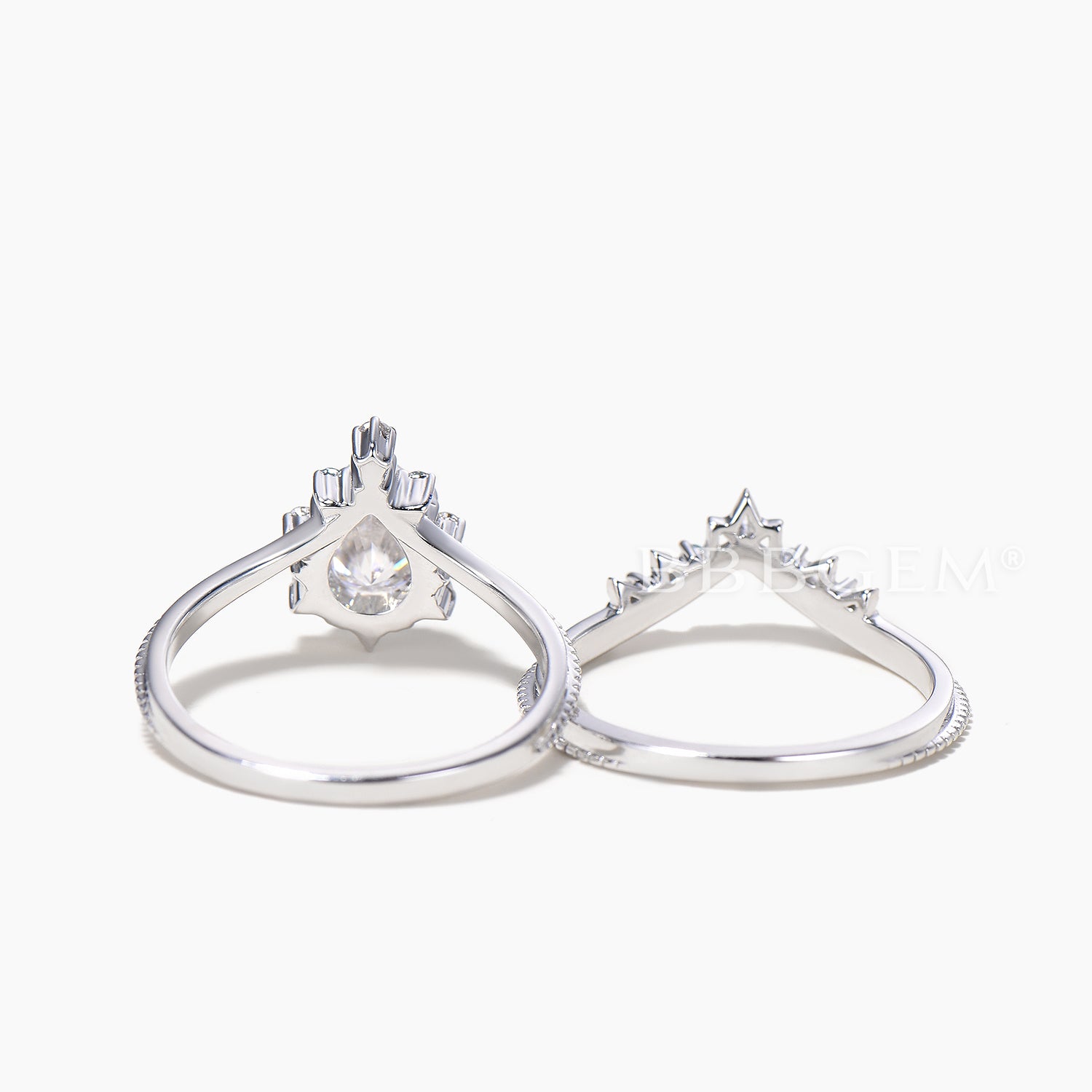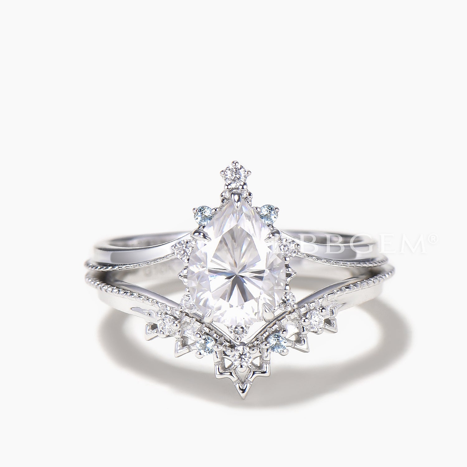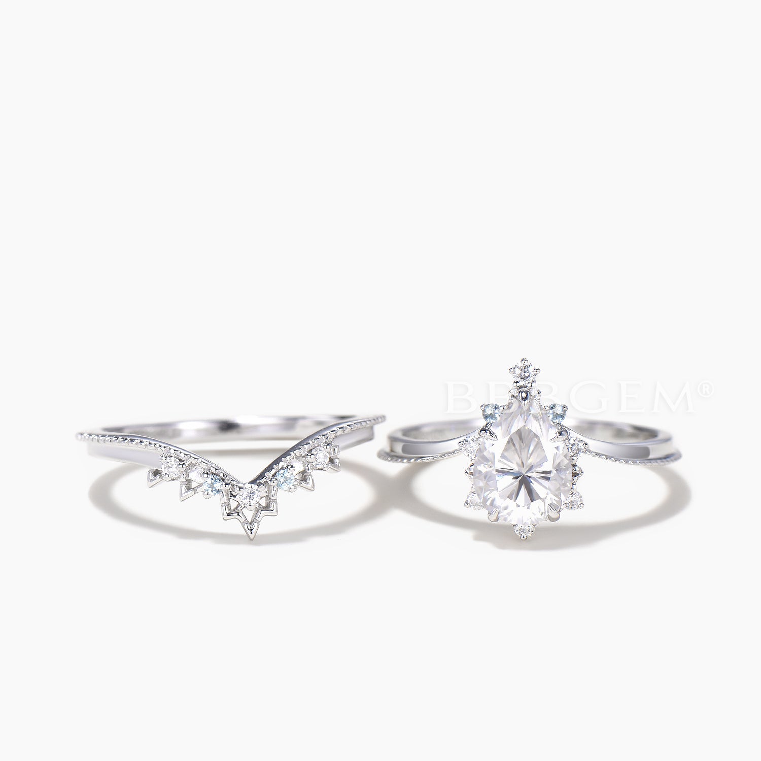 Pear Cut IGI Certificate Lab Grown Diamond Curved Ring Set Topaz Crown Band Pear Cut IGI Certificate Lab Grown Diamond Curved Ring Set Topaz Crown Band $1,638.00