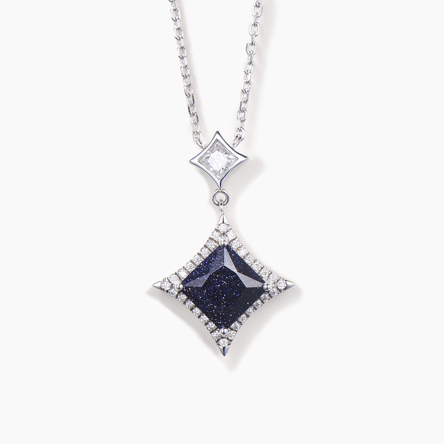 Princess Cut Blue Sandstone Necklace Moissanite Halo White Gold Pendant Princess Cut Blue Sandstone Necklace Moissanite Halo White Gold Pendant $319.00