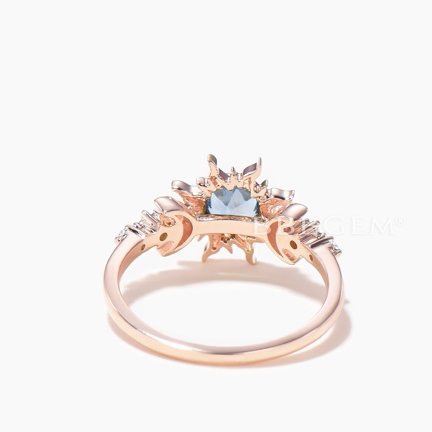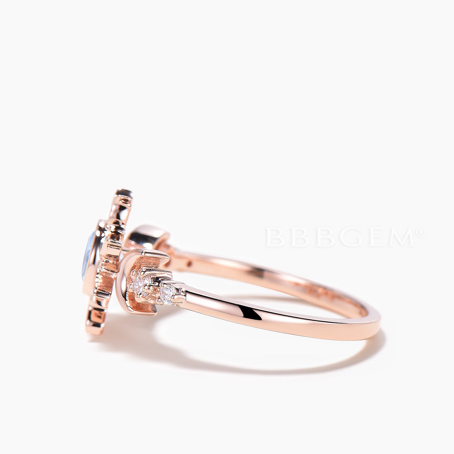 Rapunzel Inspired Celestial Ring Round Cut Natural Aquamarine Sun Wedding Ring