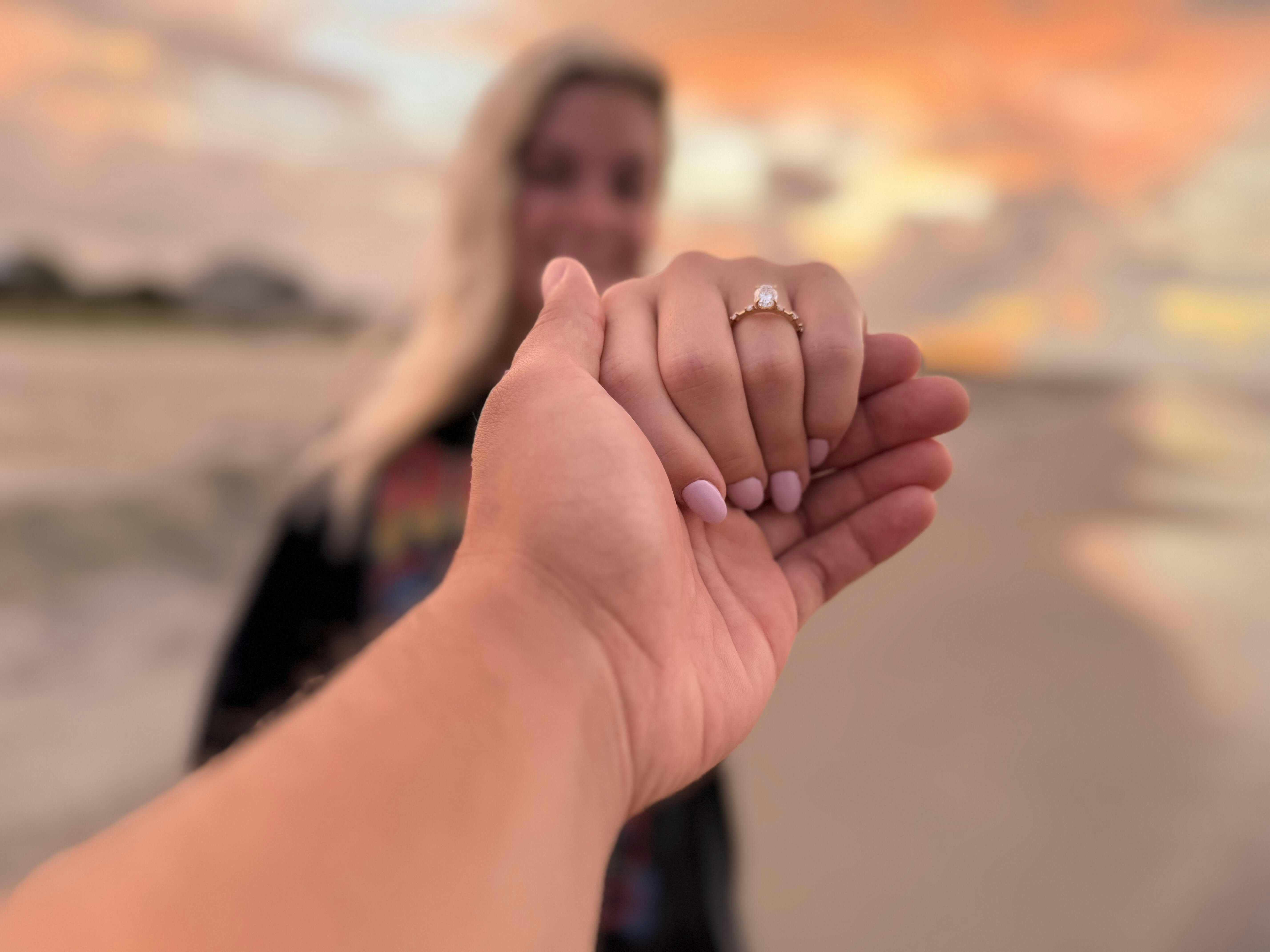This ring is just beautiful. My fiancé managed to surprise me with a trip to the natural arch. We hiked the trails and then at the arch he had us pose for a "picture." He sat his phone up to get it on camera, then he proposed. The ring is gorgeous and suits me well.