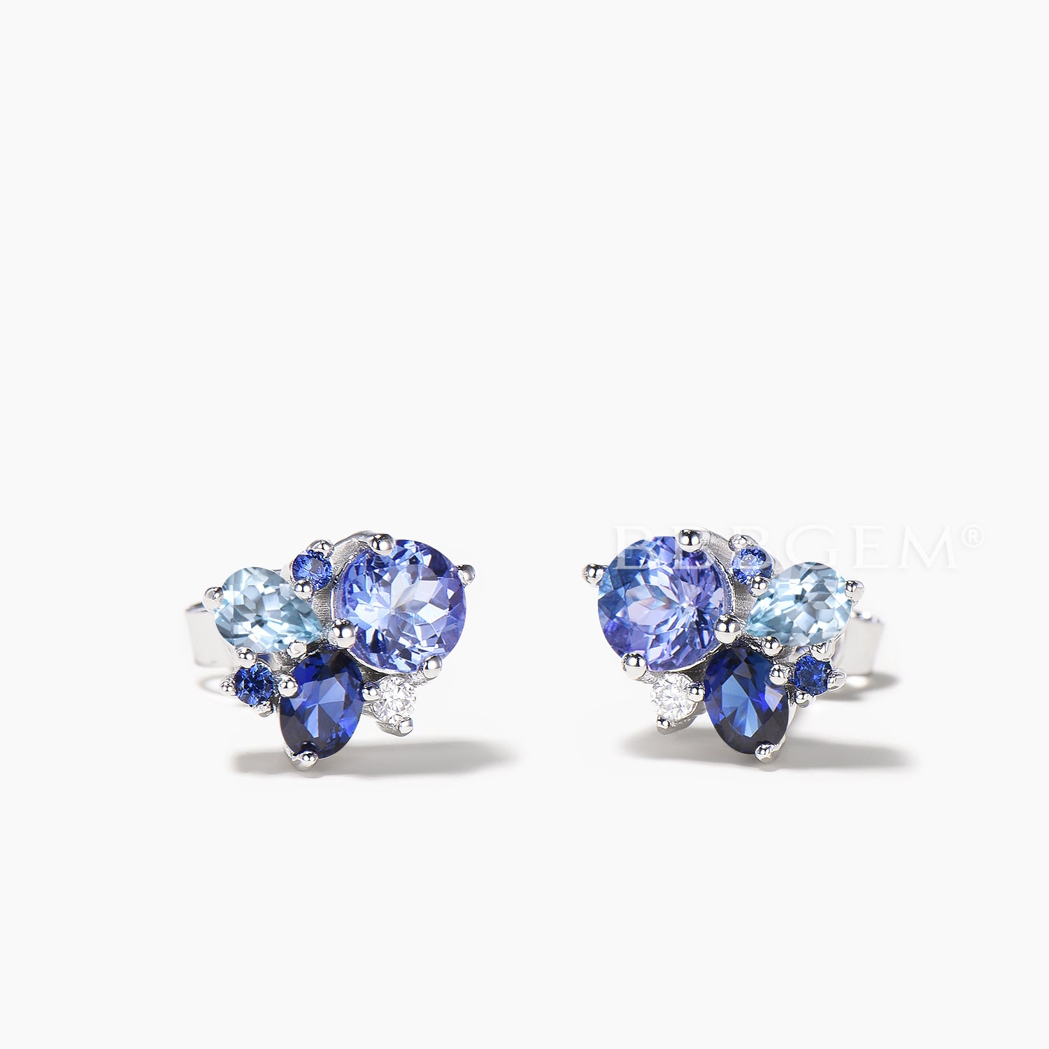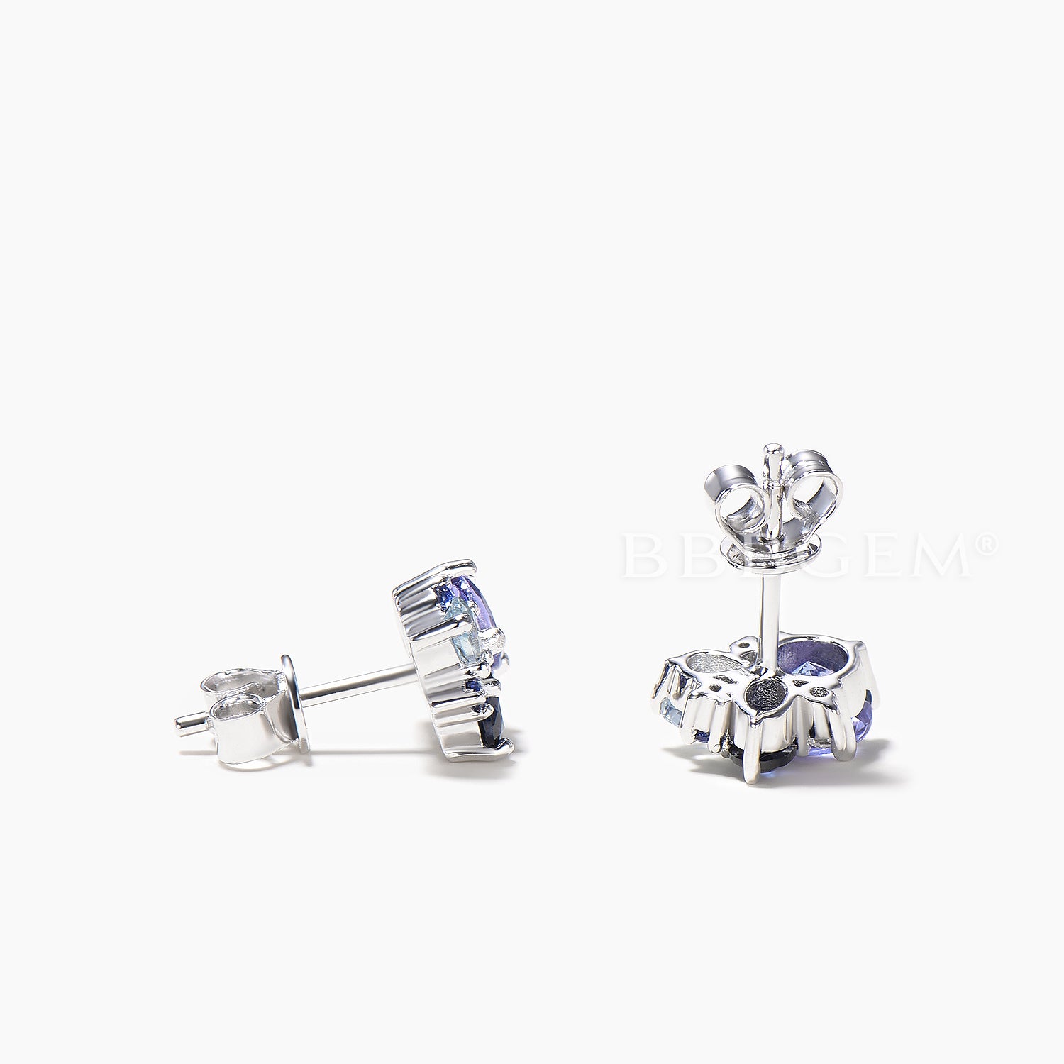 Round Cut Natural Tanzanite Stud Earrings Aquamarine Sapphire Cluster Earrings