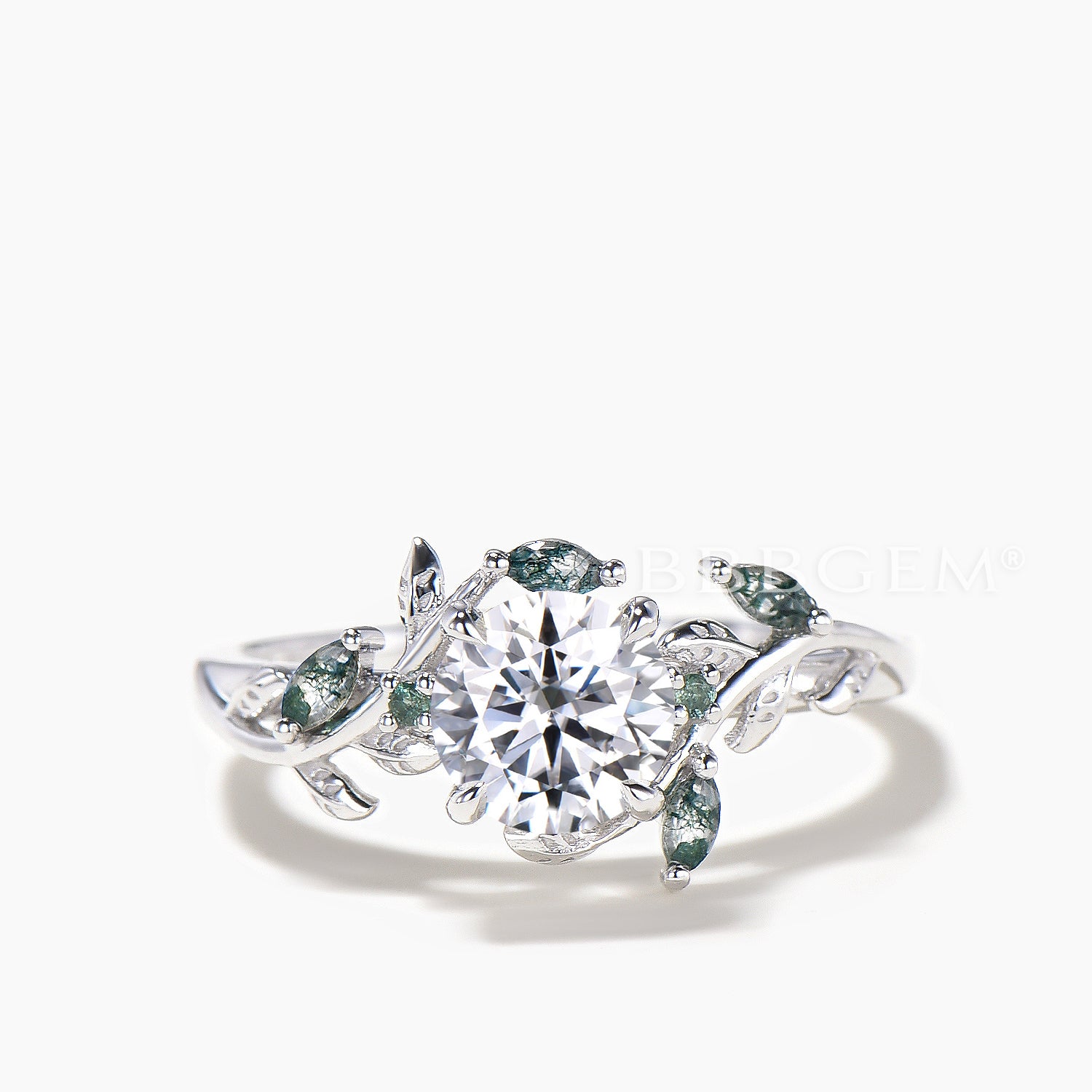 Round Cut IGI Certificate Lab Grown Diamond Wedding Ring Agate Nature Inspired Ring