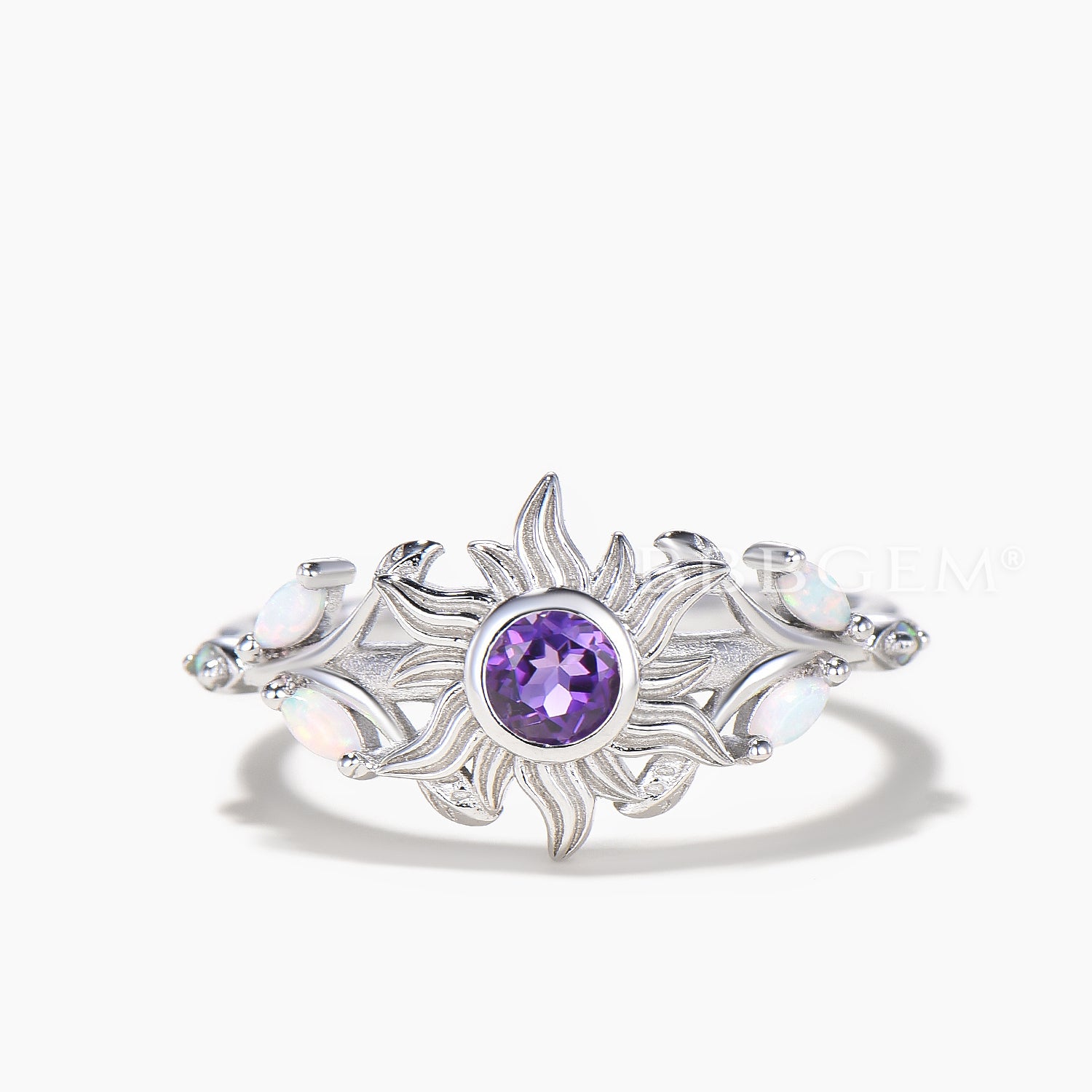 Round Cut Natural Amethyst Rapunzel Sun Engagement Ring Opal Accent Ring