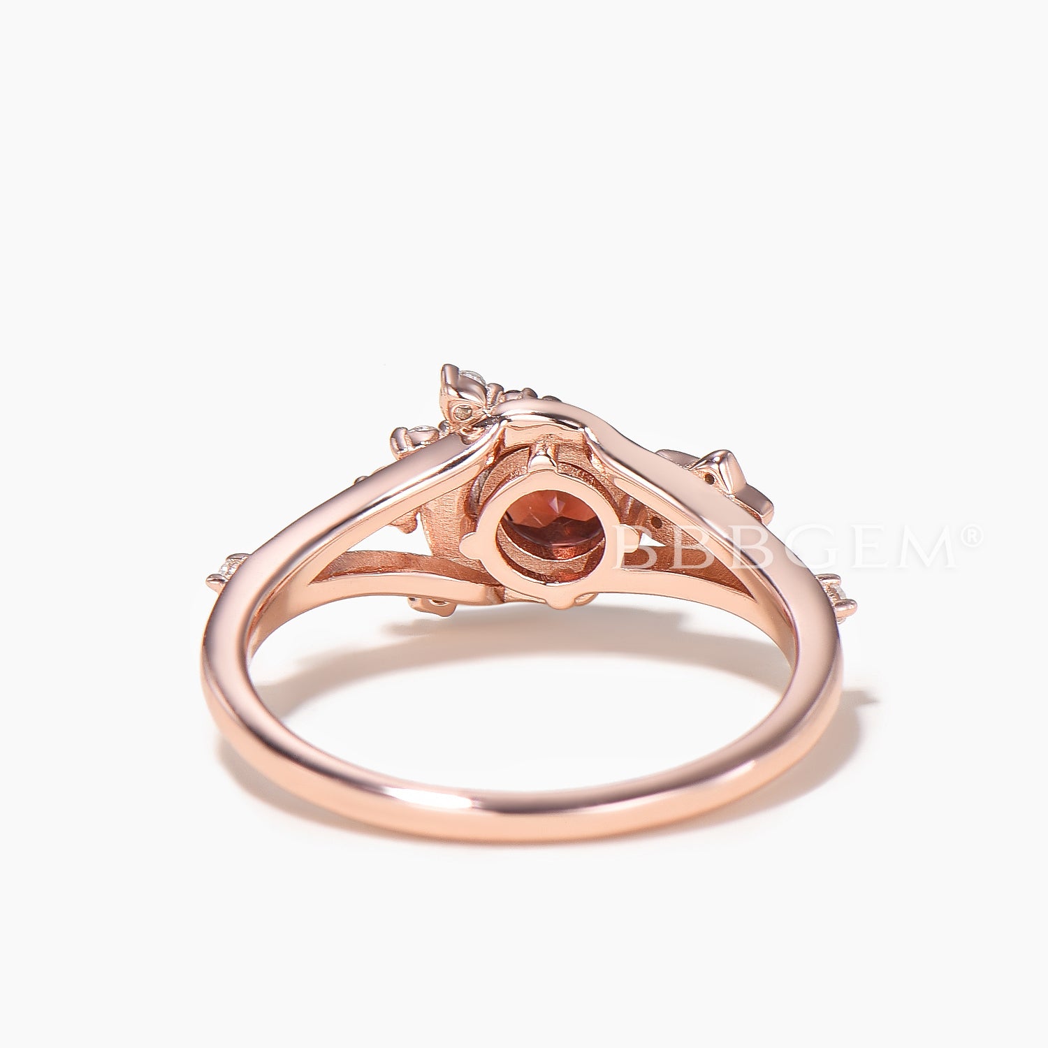 - Main stone: 5mm Round Cut Garnet