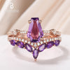 Coffin Purple Amethyst Engagement Rings with Crystal Birthstone Statement Rings Set