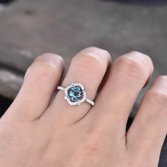 Oval Lab Alexandrite Engagement Ring Infinity Diamond Halo Ring Criss Cross in 14K/18K
