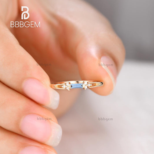 Dainty Blue Moonstone Engagement Ring Moissanite Deco Minimalist Ring