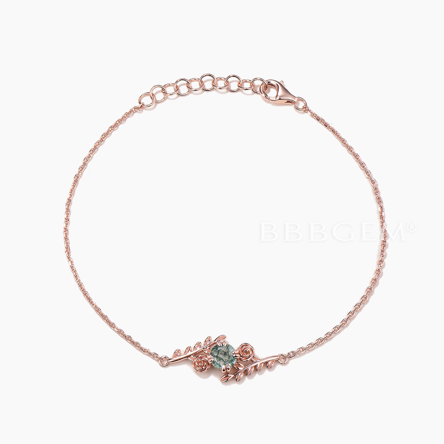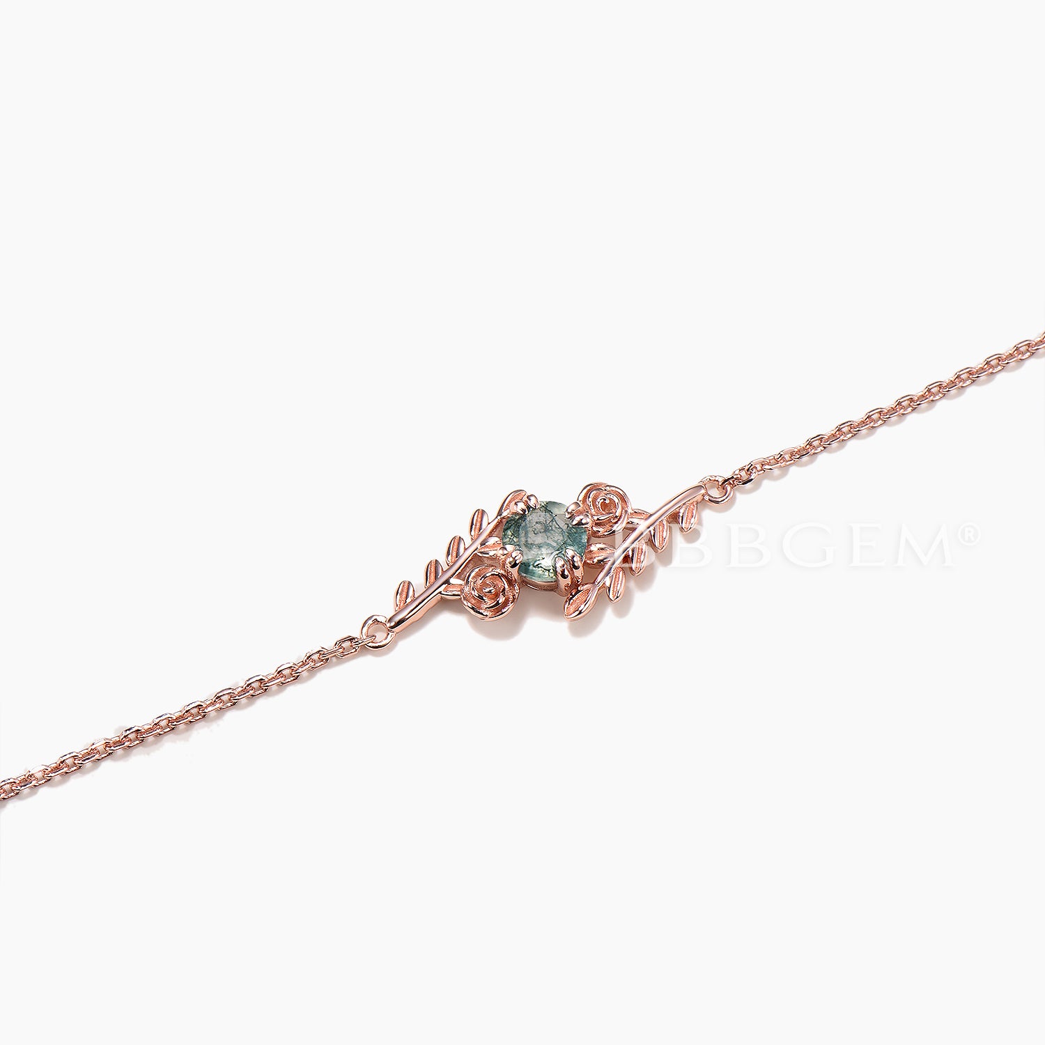 Round Cut Moss Agate Flower Bracelet Leaf Nature Inspired Solitaire Bracelet