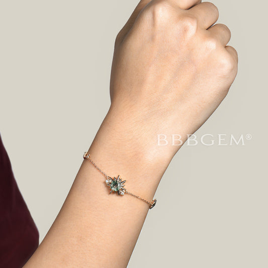 14k Solid Gold Sun Bracelet Natural Green Moss Agate Wedding Bracelet
