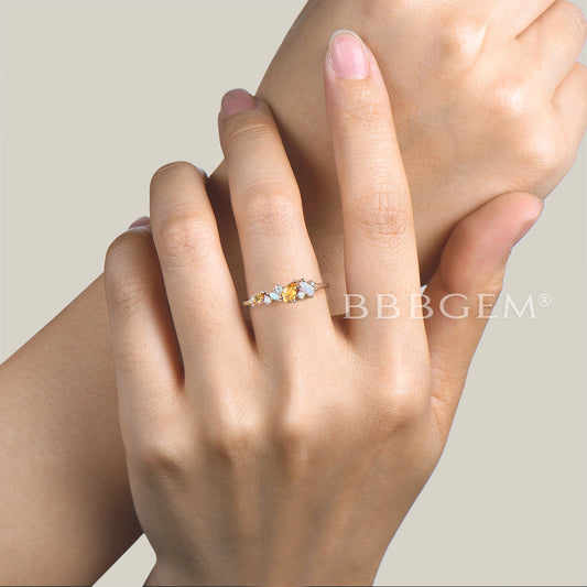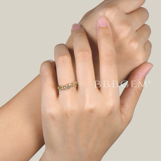 Multi-gems Cluster Ring Mixed Cut Opal Moissanite Emerald Stacking Dainty Band