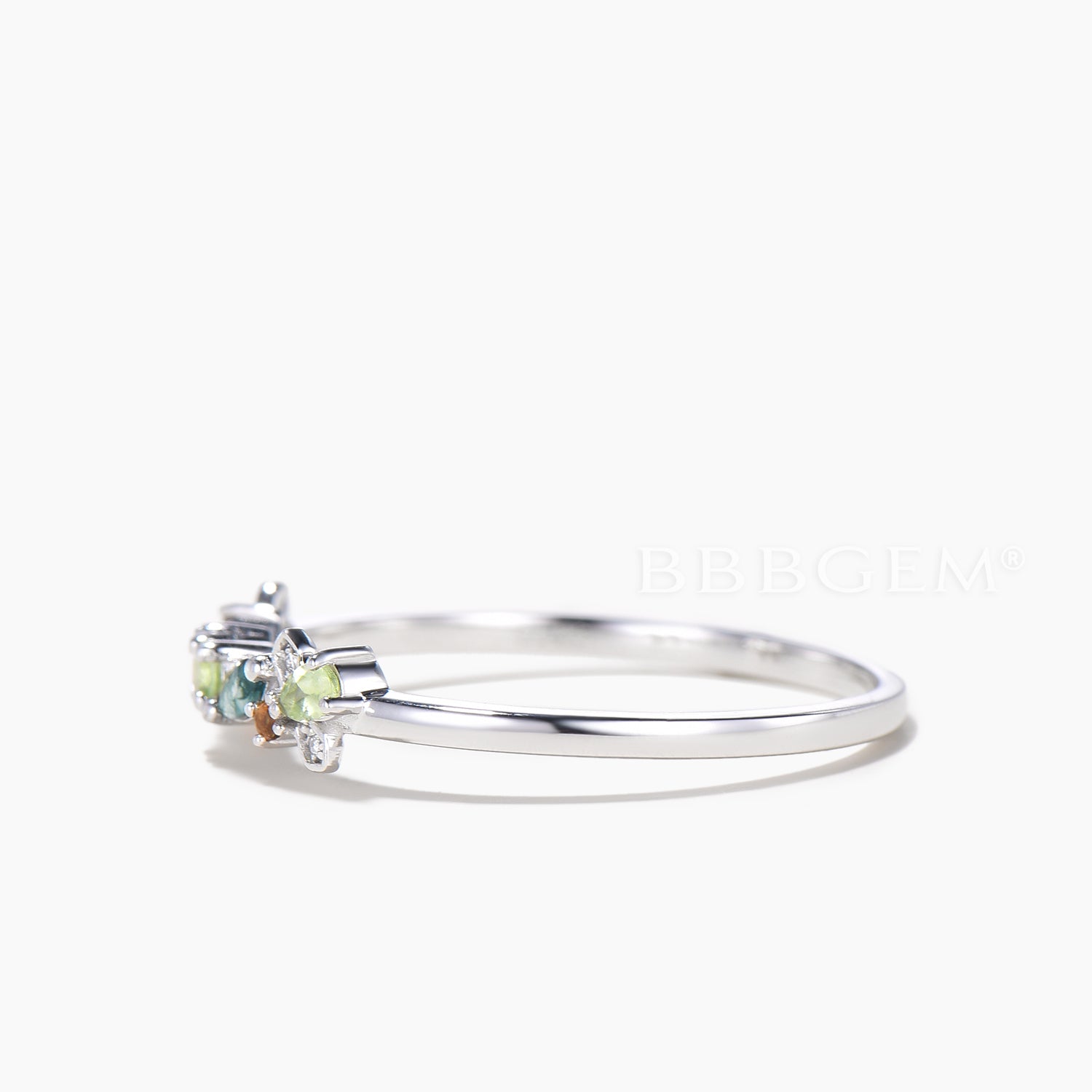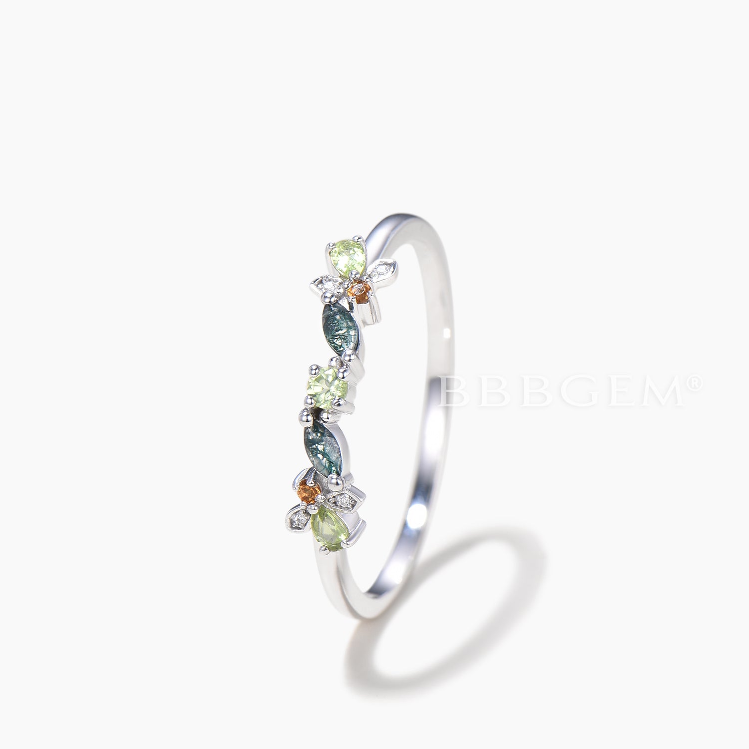 Multi-gems Cluster Firefly Wedding Ring Natural Moss Agate Peridot Stacking Ring