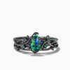 Pear Black Opal Nature Inspired Engagement Ring Emerald Black Gold Bridal Set