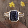 Blue Sandstone Diamond Wedding Ring, Emerald Cut 8x10mm Blue Sandstone Diamond Halo Ring, Blue Gemstone, 14k/18k Solid Yellow Gold, 4mm Diamond Wedding Band, Sandstone Promise Ring Product Specifications: Vintage Sandstone Emerald Cut Engagement Ring: