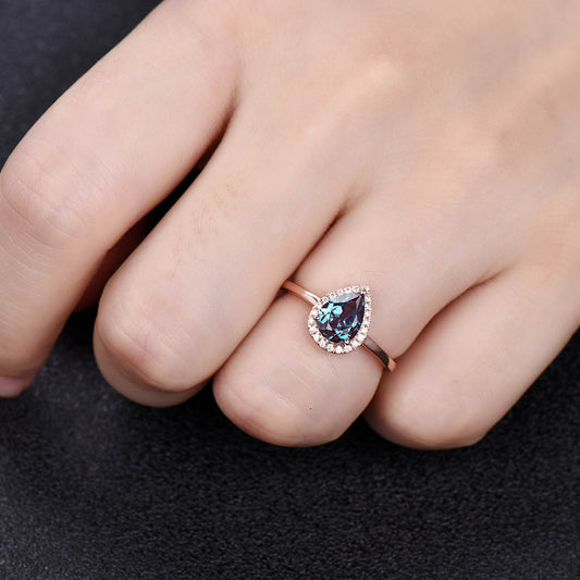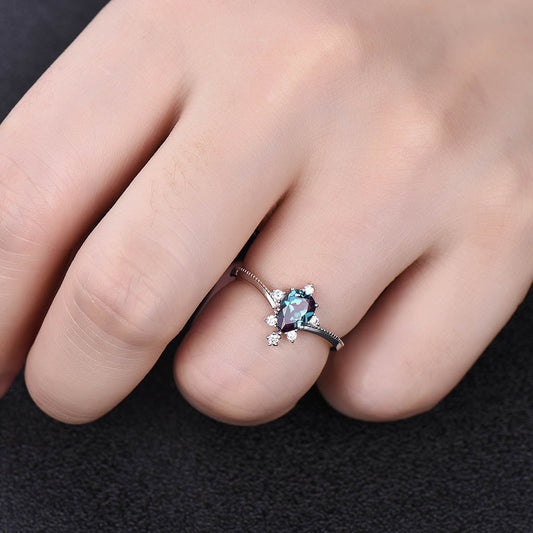 Vintage Pear Shaped Lab Alexandrite Engagement Ring