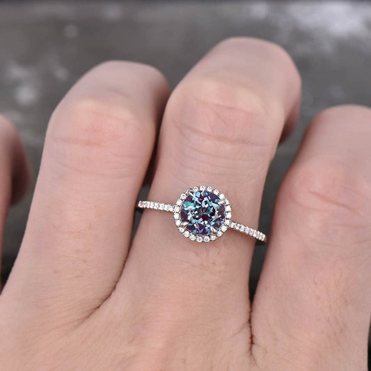 1 Carat Alexandrite Ring Floral Halo Engagement Ring Vintage Romantic