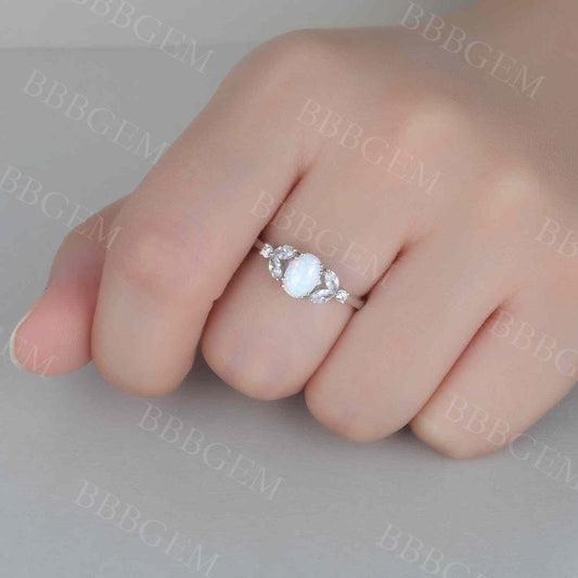 Art Deco Verbena Opal Moissanite Diamond Engagement Ring Marquise Antique