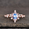 14K/18K Rose Gold Rainbow Moonstone And Diamond Engagement Ring Unique