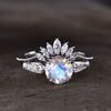 Female Moonstone Bridal Set Solitaire Rose Gold,Art Deco Moissanite Matching Band
