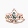 3PC Kite Cut Natural Moss Agate Engagement Ring Diamond Wedding Bridal Set