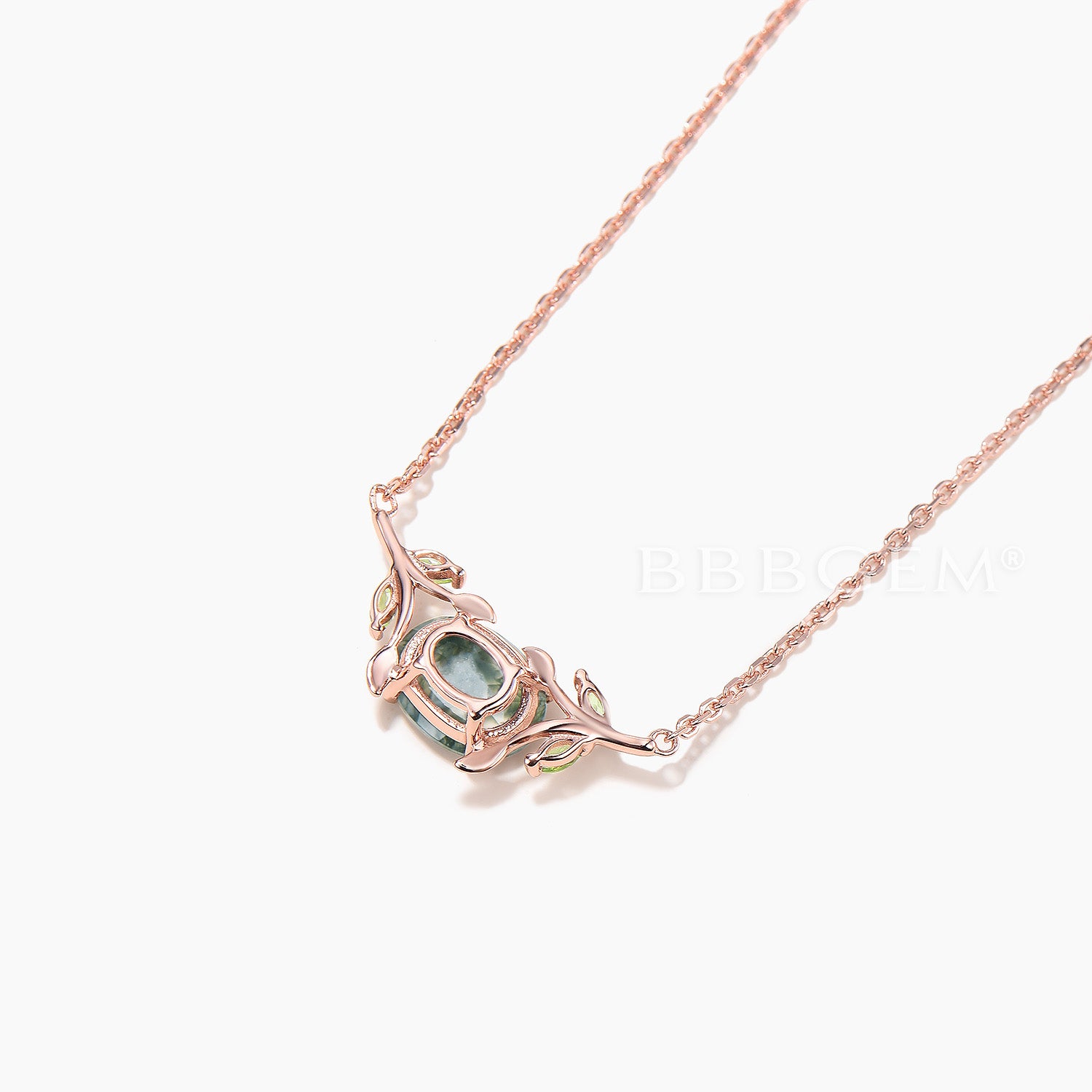 2CT Oval Cut Natural Moss Agate Wedding Necklace Peridot Twig Leaf Pendant