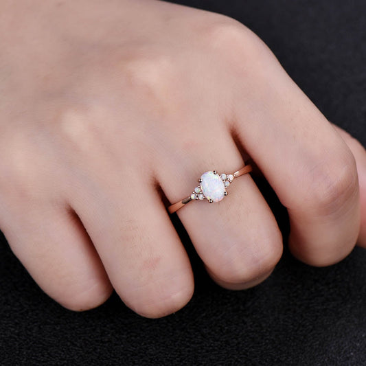 Oval Opal Engagement Ring Cluster Opal Oval Cut Ring 14k/18k