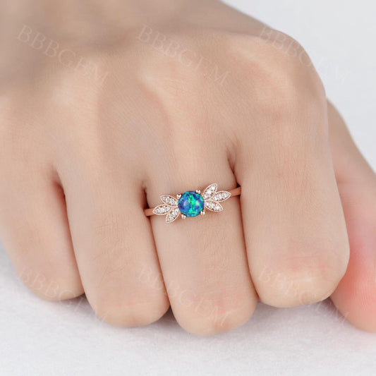 14K/18K Black Blue Opal Moissanite Engagement Ring Rose Gold Are Deco