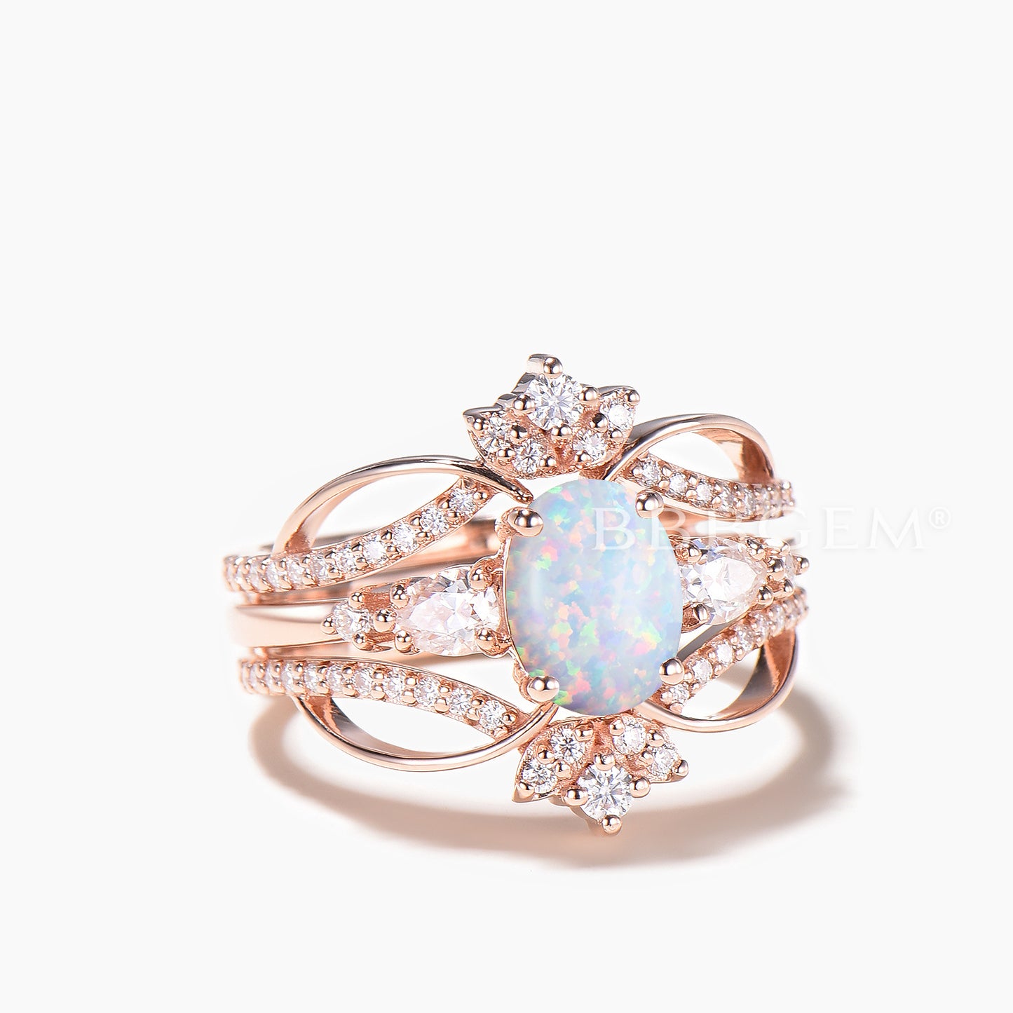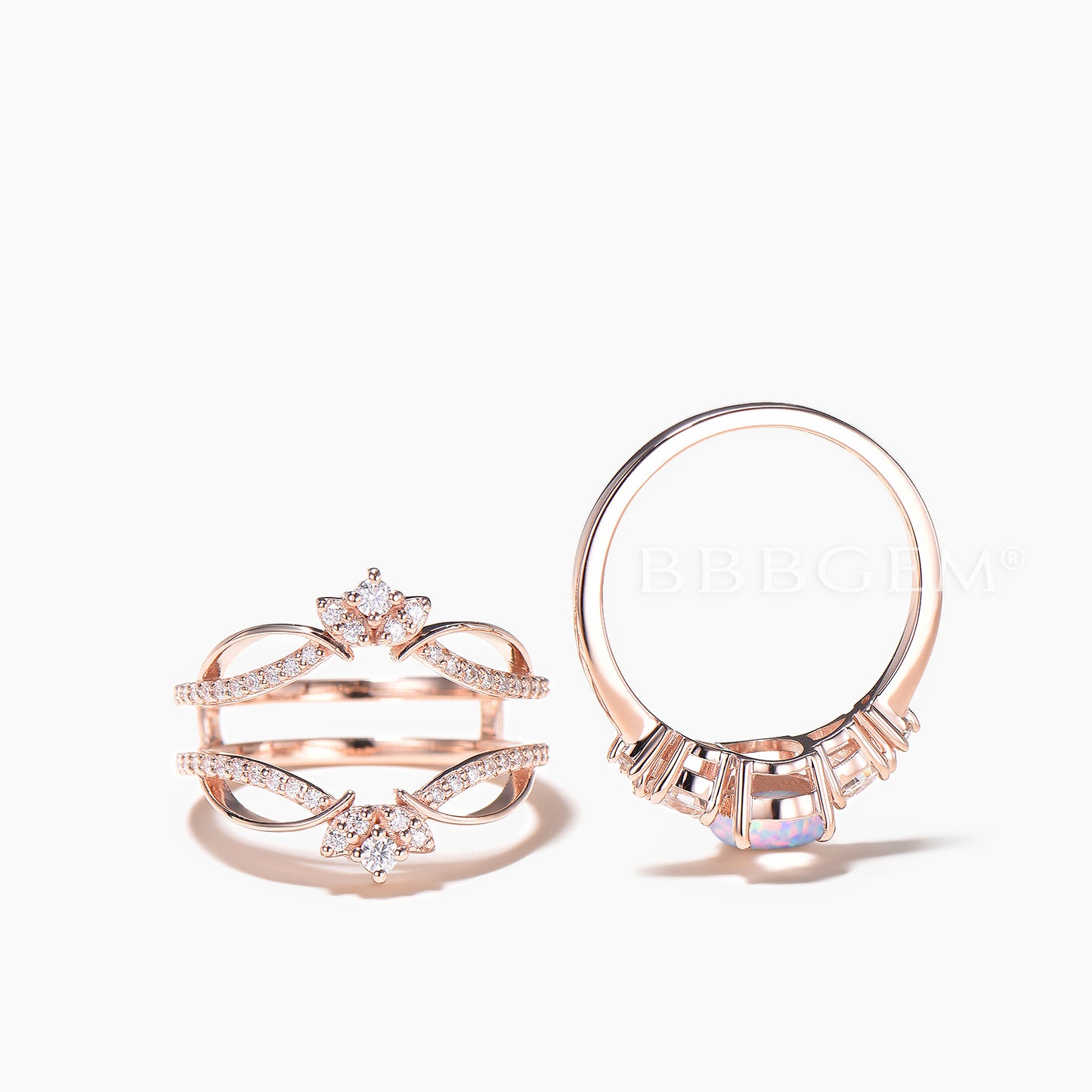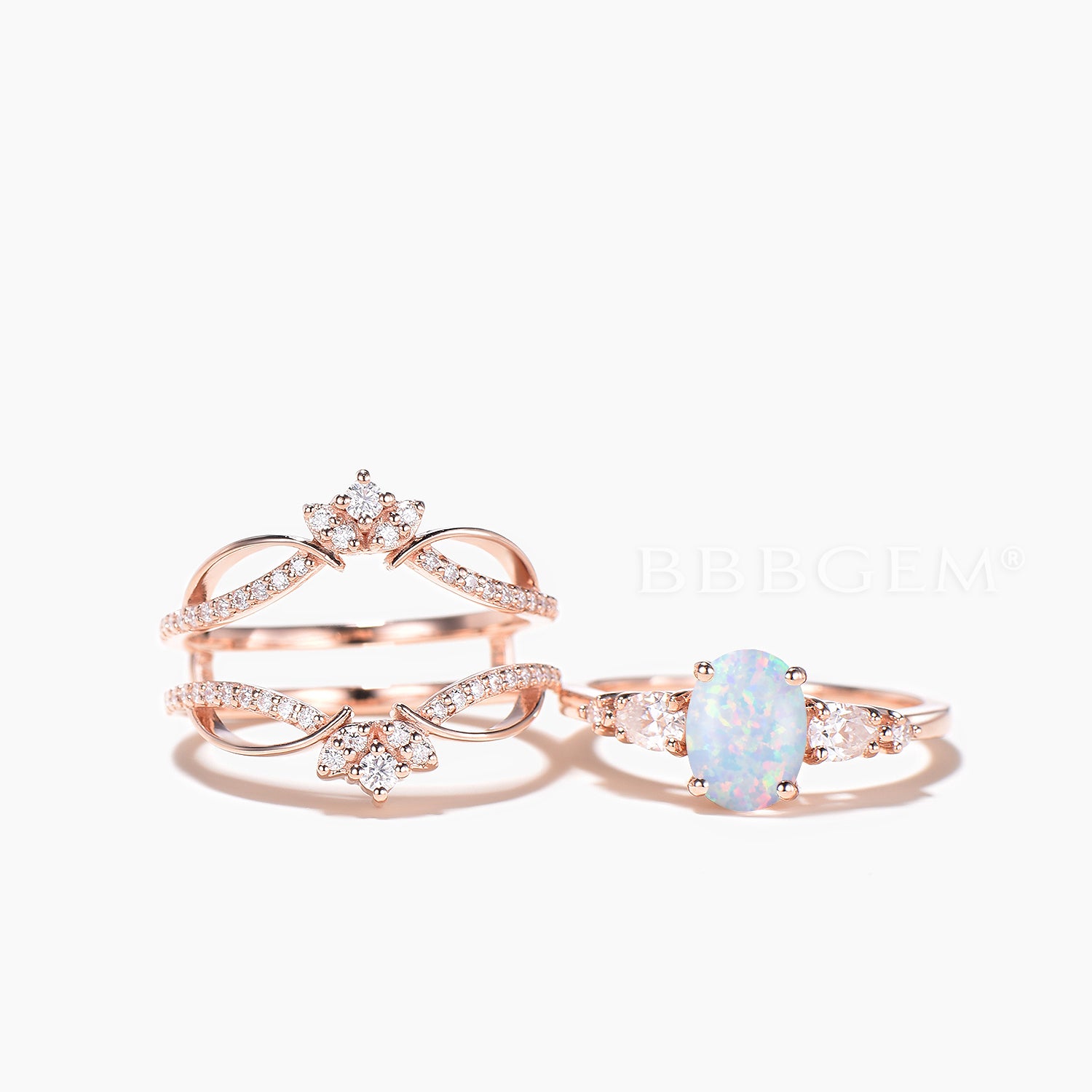 Oval Cut White Opal Engagement Ring Moissanite Ring Enhancer Bridal Set