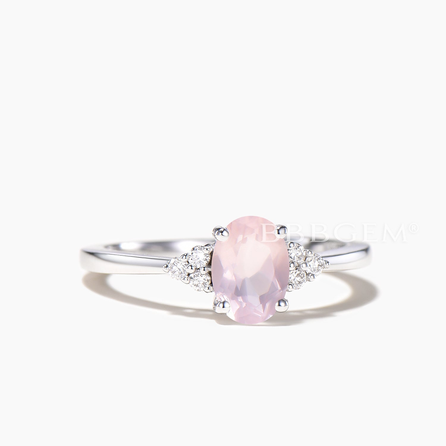 Dainty Oval Cut Rose Quartz Engagement Ring:| Metal | Sterling Silver, 10k/14k/18k gold, Platinum |