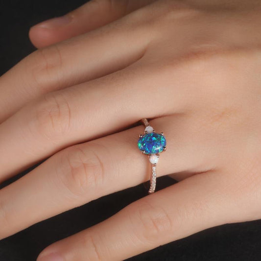 Art Deco Oval Cut Opal Engagement Ring Cluster Diamond Ring Rose Gold