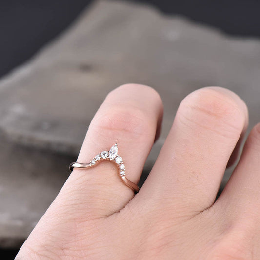 Rose Gold Diamond Curved Wedding Band Art Deco V Shaped Stacking Ring Chevron Crown Wedding Ring