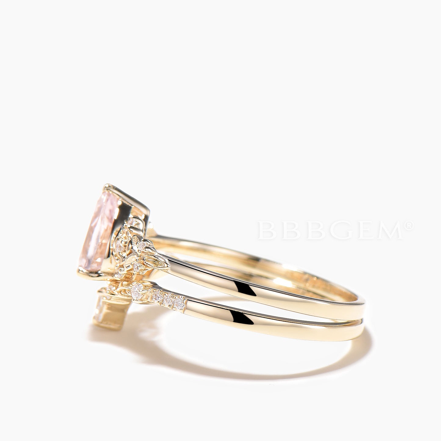 1.25CT Teardrop Cut Natural Morganite Flower Wedding Ring Moissanite Bridal Set 1.25CT Teardrop Cut Natural Morganite Flower Wedding Ring Moissanite Bridal Set $1,409.00