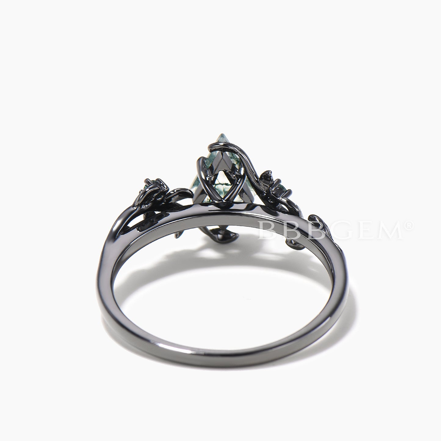 1CT Kite Cut Natural Moss Agate Engagement Ring Emerald Leaf Black Gold Ring