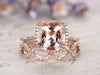 2pcs Cushion Morganite Engagement ring Set Infinity Diamond Wedding Ring