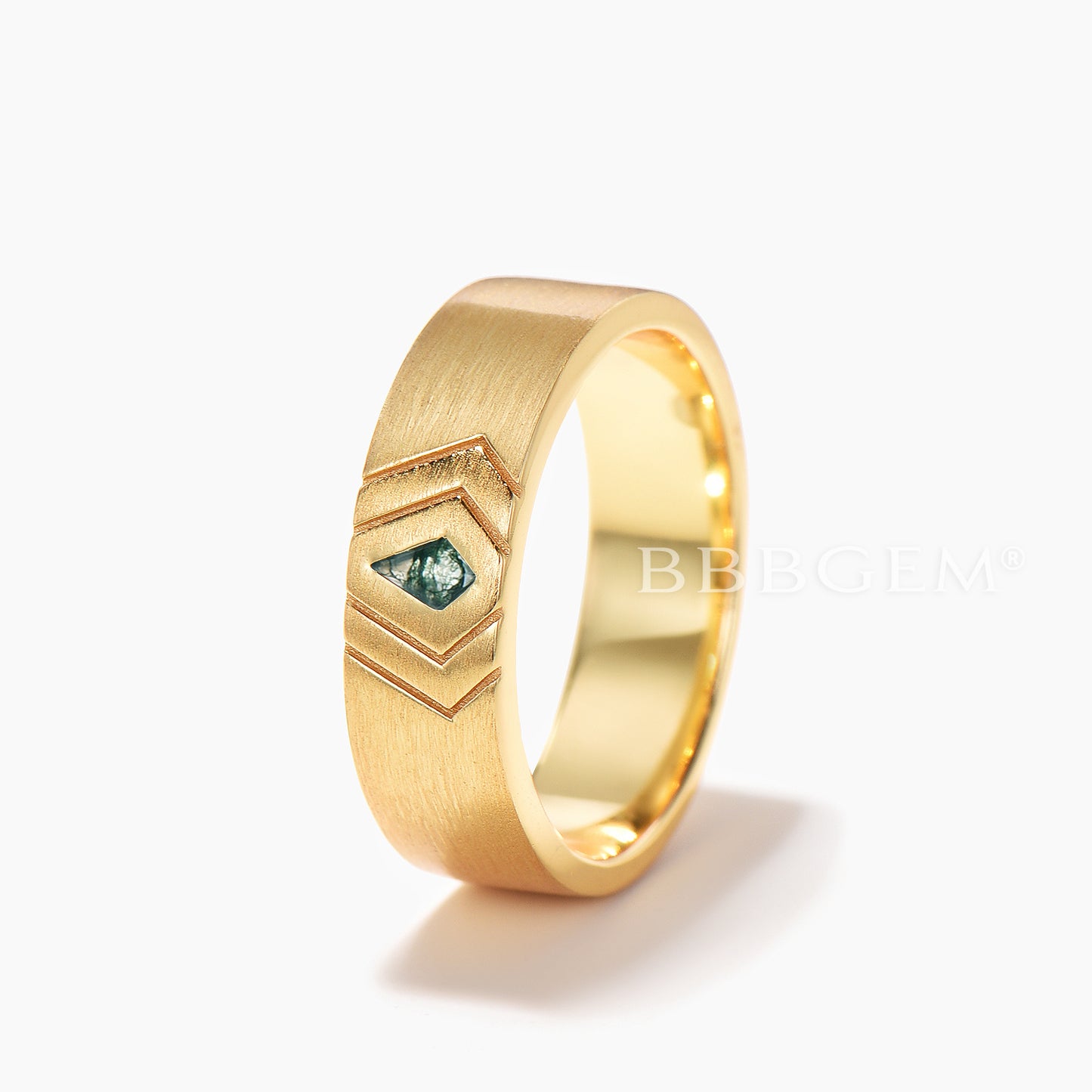 6mm Brushed Men Band Kite Cut Natural Moss Agate Solitaire Wedding Ring