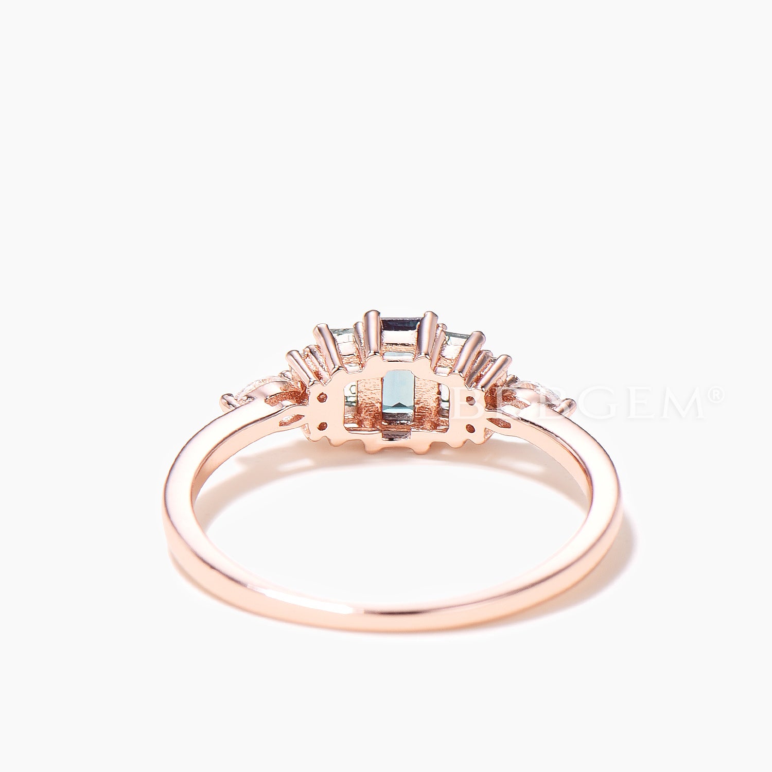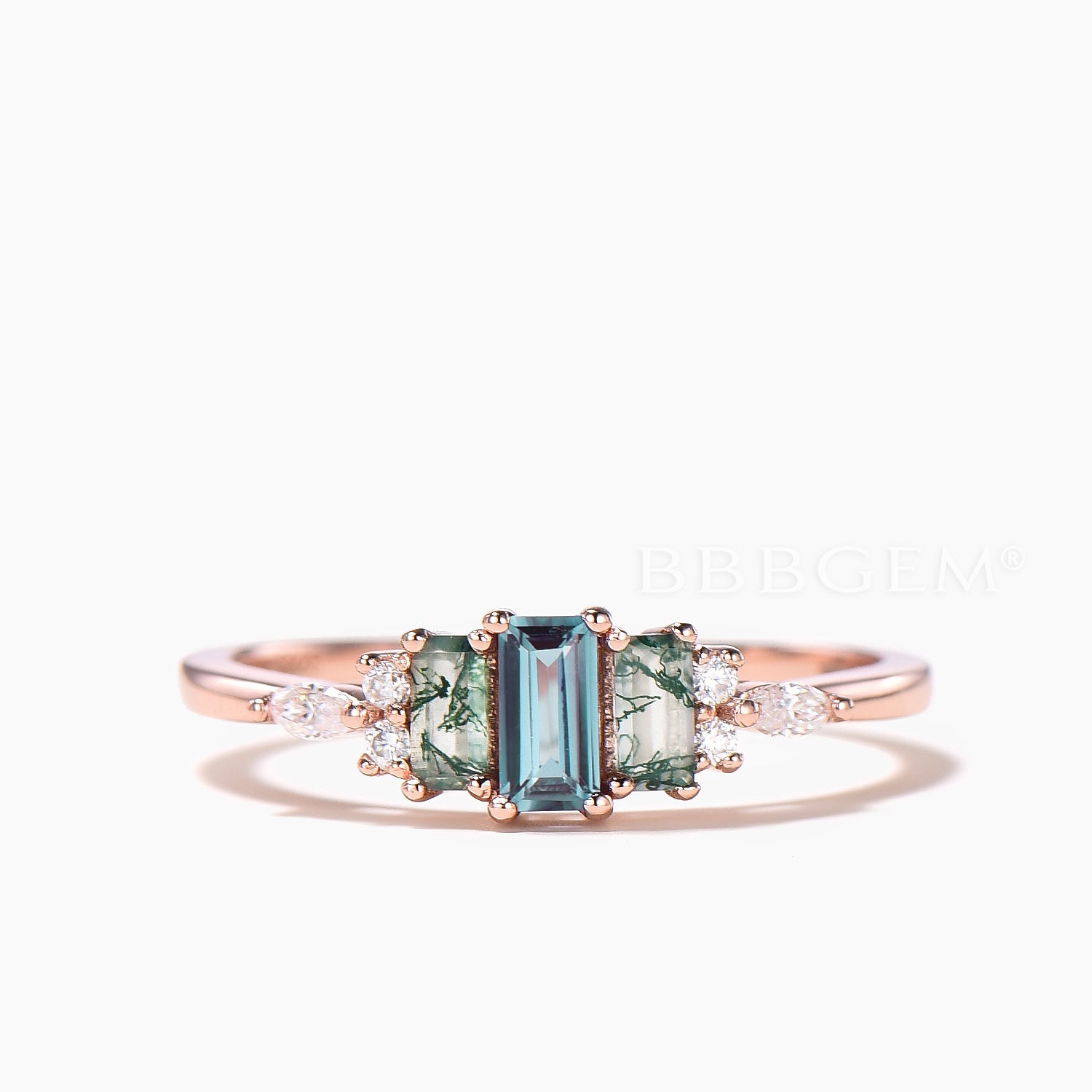 Baguette Cut Color-change Alexandrite Moss Agate Cluster Engagement Ring