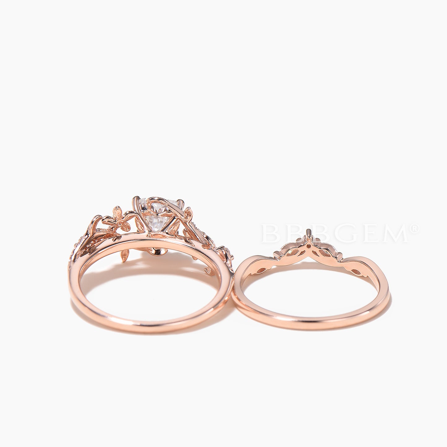 Heart Cut Moissanite Flower Wedding Ring Moissanite Nature Inspired Bridal Set