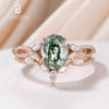 6x8mm Oval Cut Moss Agate Wedding Ring Set In 14k Solid Rose Gold, Natural Inspired Moss Agate Moissanite Engagement Ring, Twig Vine Marquise Shaped Moissanite Stacking Band, Natural Green Moss Agate Promise Bridal Ring, Green Gemstone Women Ring Set Anniversary Gift Engagement Ring: Moss agate engagement ring Kindly noted: if you choose sterling silver, the side stone and matching band stones would be cz diamond not moissanite. Product Specifications: Natural Green Moss Agate Wedding Ring| Metal | Sterling Silver, 10k/14k/18k gold, Platinum |
