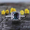 Princess Cut Alexandrite Diamond Engagement Ring Thin Pave Half Eternity Band 7mm Color-Changing Gemstone Ring Art Deco