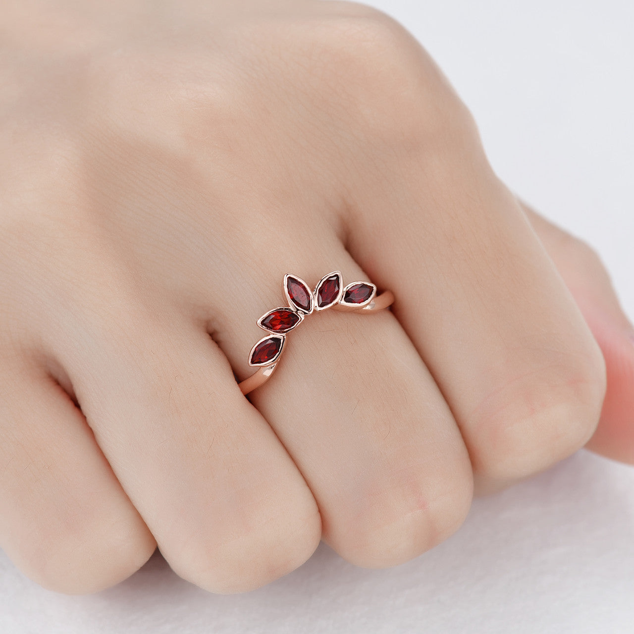 Product Specifications: Unique Marquise Shaped Garnet Wedding Band: