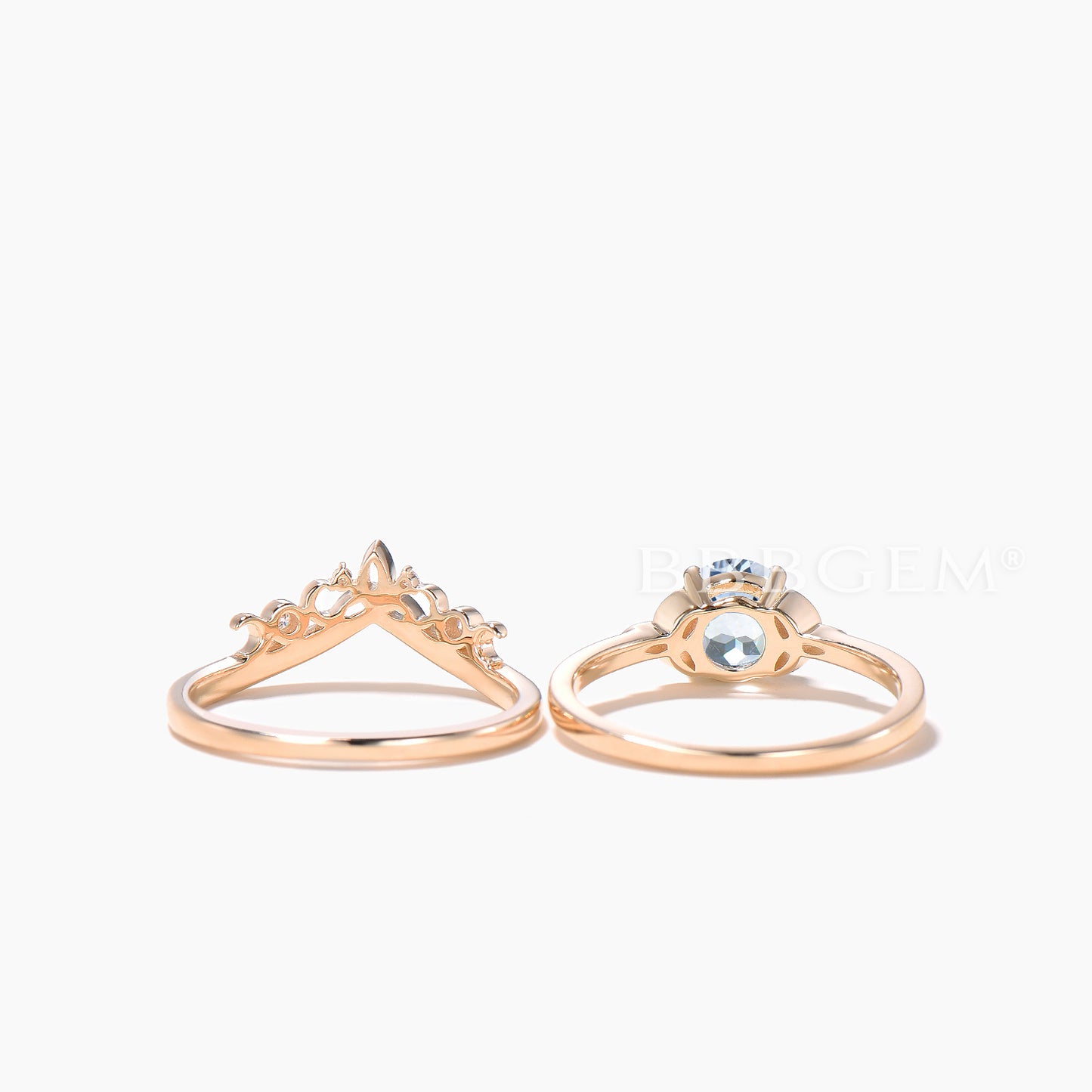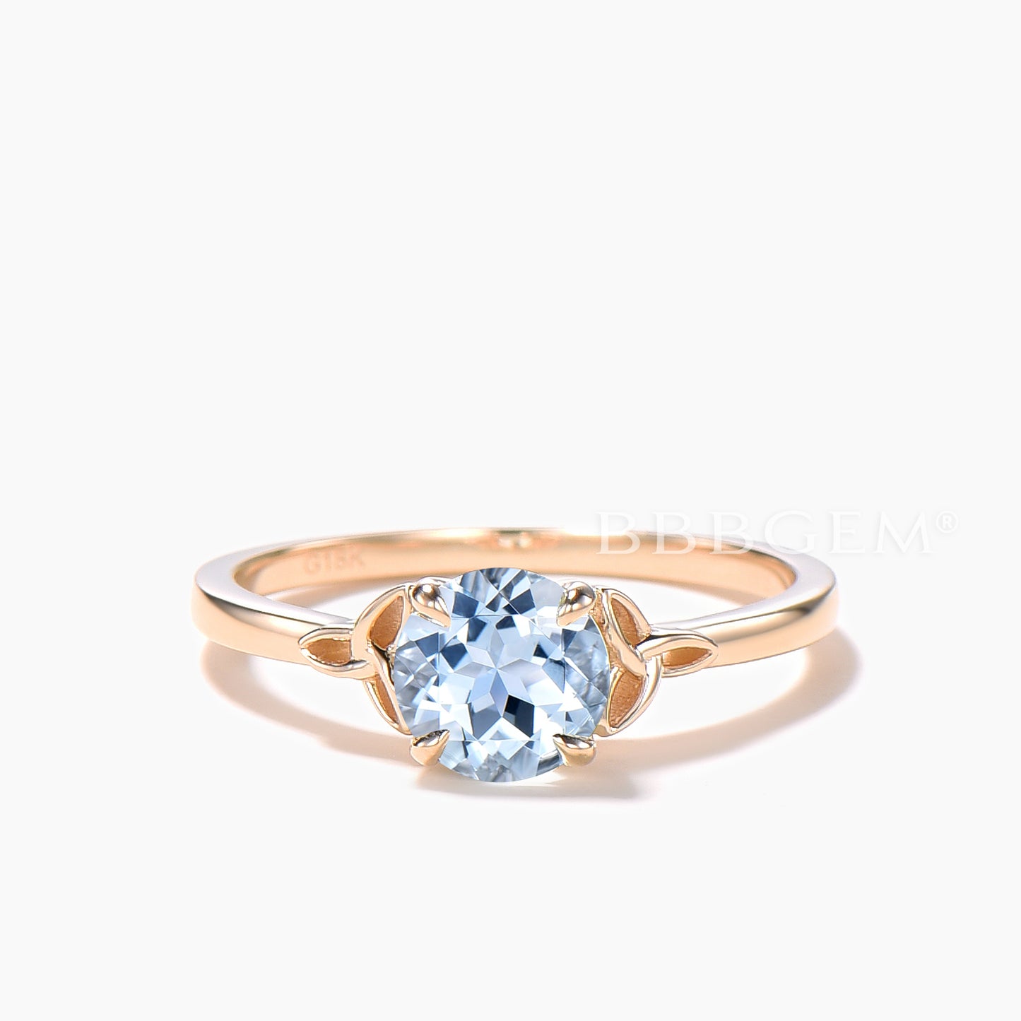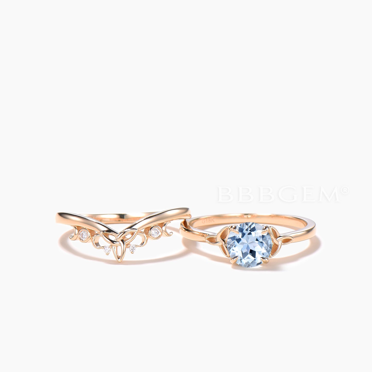 Round Cut Natural Aquamarine Engagement Ring Diamond Celtic Knot Bridal Set