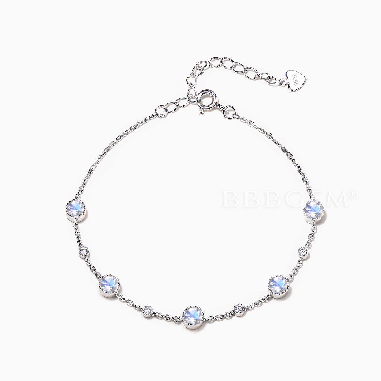 Round Cut Natural Moonstone Bezel Set Bracelet Diamond White Gold Bracelet