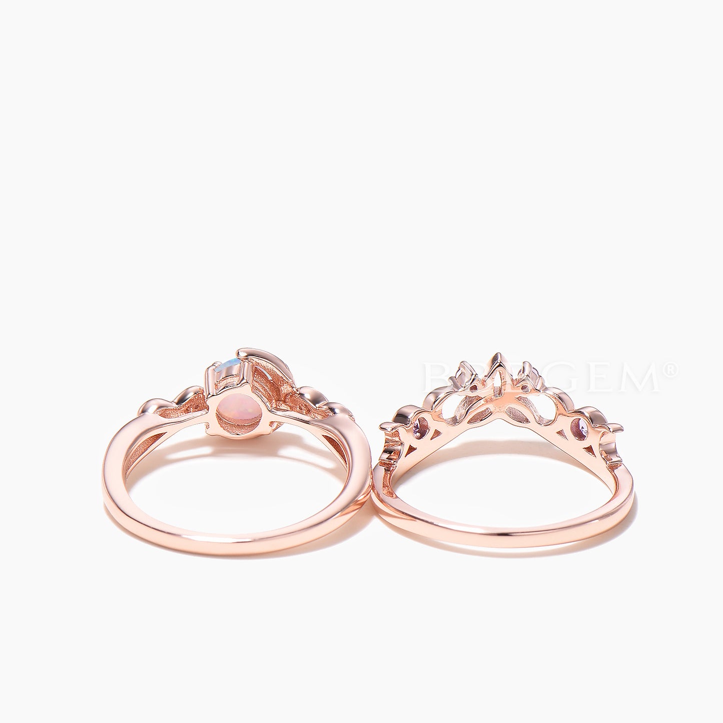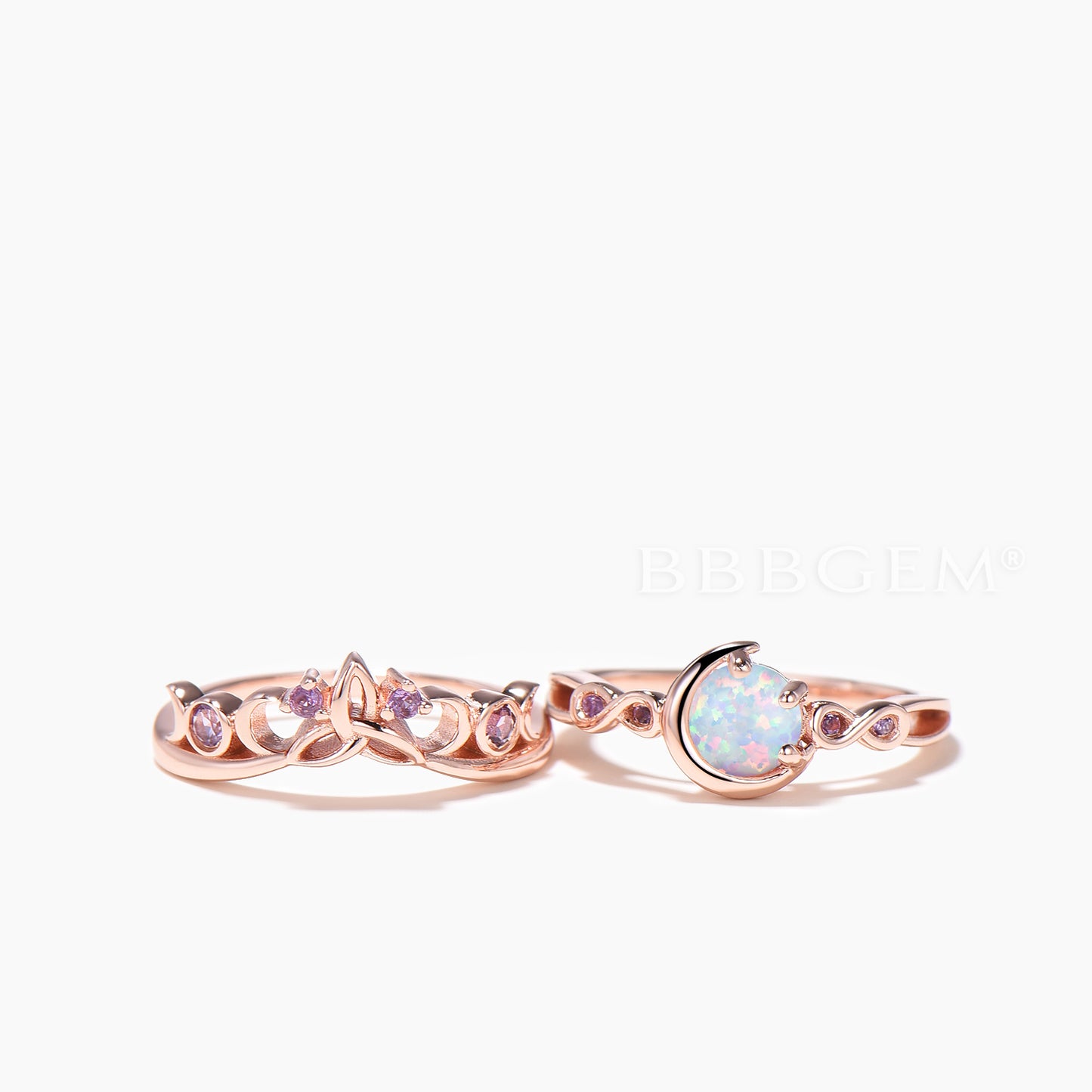 Round Cut White Opal Infinity Engagement Ring Amethyst Celtic Knot Bridal Set