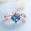 Vintage 6mm Princess Cut Alexandrite Engagement Ring, Moissanite Side Stone, Marquise Shaped & Round Cut Moissanite Matching Band, Curved Moissanite Wedding Band, 14k/18k Solid Rose Gold Product Specifications: Vintage Princess Cut Alexandrite Engagement Ring:| Metal | Sterling Silver, 10k/14k/18k gold, Platinum |