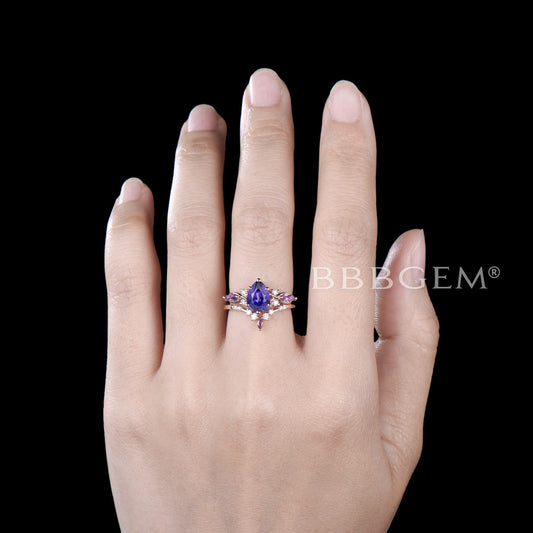 1.25CT Pear Cut Sapphire Engagement Ring Spinel Celtic Knot Celestial Bridal Set